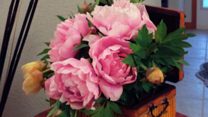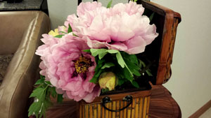 Cut those Peonies and put in a Base........ 2Hours later on the Right.. Full Bloomed