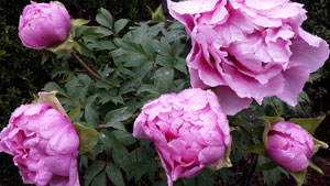 The Peony on the Right Hand Side of 牡丹の親子, All were wet with Rains