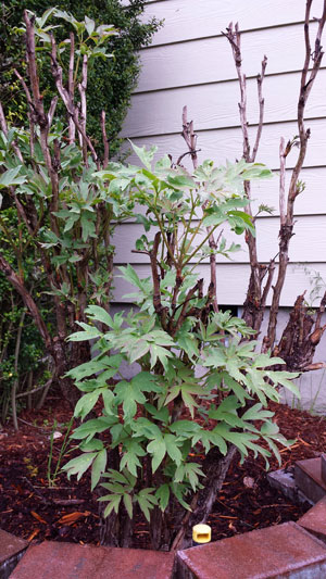 Below is the Giant Peony survived for Second Year, with few leaves and buds....no.....